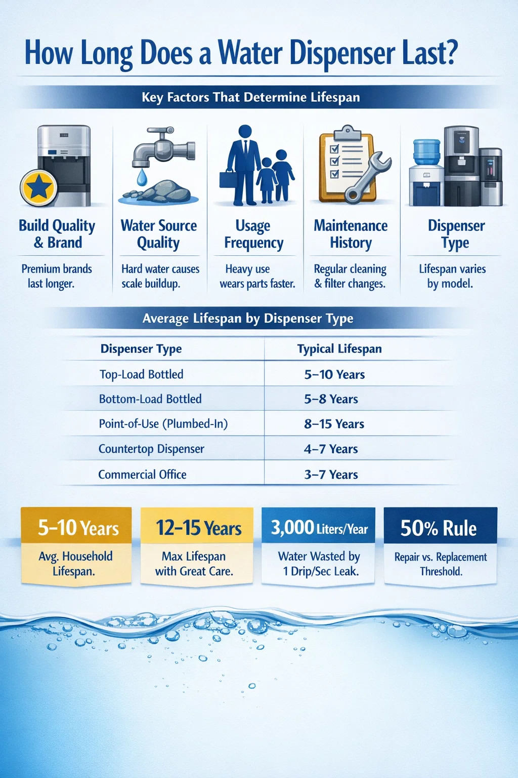 Összefoglalás: A vízadagoló élettartamával kapcsolatos legfontosabb számok
