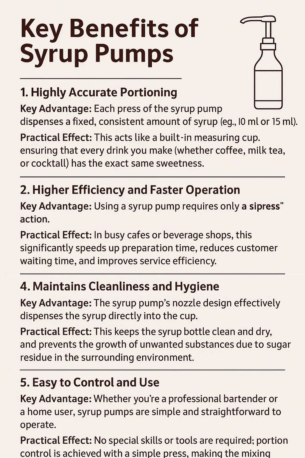 Legfontosabb előny: Akár professzionális csapos, akár otthoni felhasználó, a szirupszivattyúk kezelése egyszerű és egyszerű.
